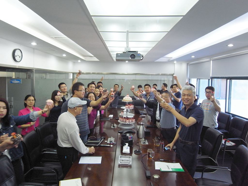 会后,两地员工分享生日大蛋糕,为公司的生日庆祝,为公司的成长祝福!