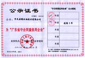 近日,广东省工商行政管理局完成对申请“守合同重信用”企业的2016年度合同签约履约信息及其他信用监管信息的年度审核,并通过“广东省工商行政管理局守合同重信用企业网上公示系统”向社会予以公示。此次,我公司光荣地获得2016年度“守合同重信用”公示证书连续二年的签章认证,表明公司在诚信履约、守法经营方面不断推进。