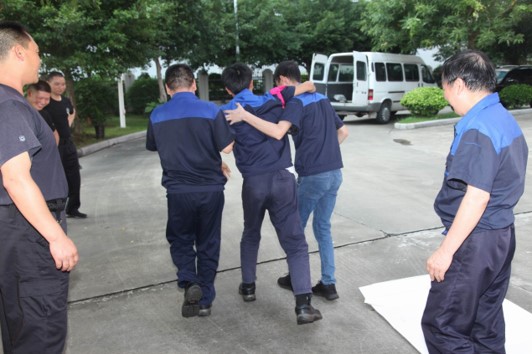 随后,培训活动安排各单位组队模拟对事故现场受伤人员进行简单救护,对较严重者立即安排车辆送达医院救治。模拟人员和观众兴致很高,积极参与,从中学到了正确抢救和安全护送的基本方法。