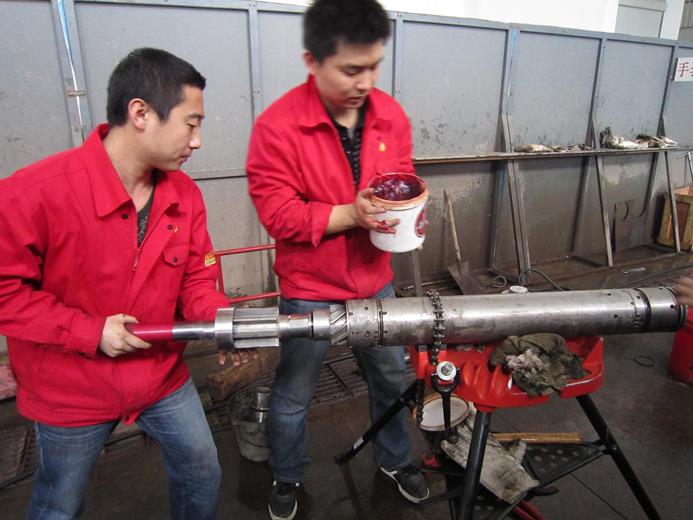 经过研发中心近1年的攻关,第一台随钻压力测量系统样机(6-3/4”随钻压力测量短节)研制成功,交付川庆钻采院欠平衡钻井公司进行首次现场实验。2011年2月11日至13日在川院欠平衡钻井车间完成组装、地面联调实验,仪器信号稳定,工作正常。
