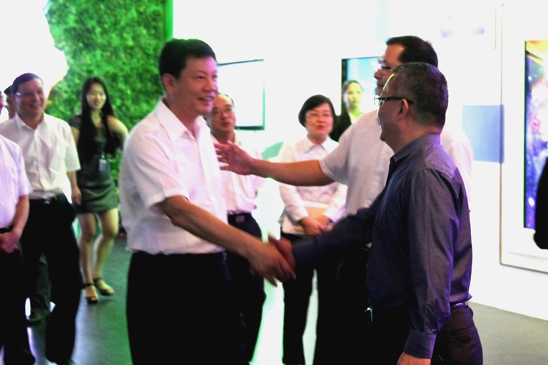 8月20日,广州市市长陈建华、副市长陈志英等结合开展党的群众路线教育实践活动率队到广州开发区调研,了解经济转型促发展工作。陈建华市长一行由区工委书记骆蔚峰等区领导陪同参观了新近落成的开发区展览厅,石岩峰董事长在代表开发区高新装备企业的我公司展位前亲自向市区领导介绍公司及产品情况。对于公司研发出的地下“巡航导弹”,市区领导均表示了浓厚的兴趣,而董事长在讲解中为广州市海洋战略产业发展提出的恳切建议,更加引起广州市领导对新兴产业的格外关注。