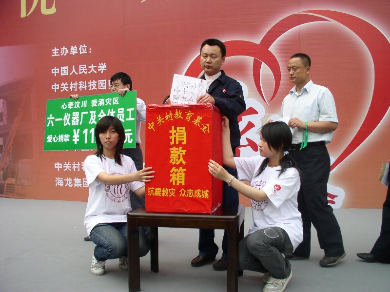 日,汶川发生大地震,全国人民众志成城,积极投入抗震救灾。我公司员工急灾区人民之所急,踊跃参加驻区的向灾区献爱心活动。公司向中关村教育基金捐款