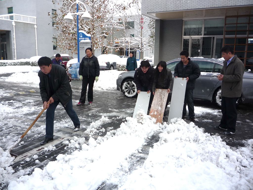 2009年11月10日,北京下了入冬以来第一场大雪,雪厚至少二十厘米,—早来到公司北京分部,玉泉慧谷园区的美景让人美不胜收。为了保证白天顺利开展工作,到达公司的员工陆陆续续加入扫雪的行列。大家找来铁铲、木板等工具,忙得不亦乐乎,但瑞雪的清扫过程也令员工感到其乐无穷,劳动结束,大家纷纷与“雪美人”合影,欢声笑语响遍园区!