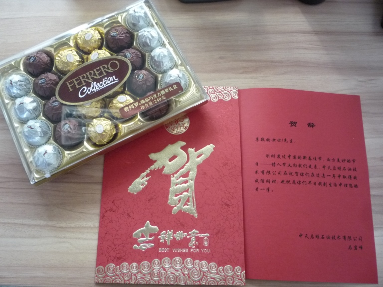 2月14日是西方的情人节,在这一天,中天启明每位员工的爱人、恋人和单身员工本人都同时收到了公司精心准备的情人节礼物——贺卡和巧克力。“千里送鹅毛,礼轻情意重”,一张简单的贺卡和一盒巧克力代表着公司对员工亲人的问候和谢意,体现着公司对员工的深切关怀。我们相信当我们的亲人收到这份礼物的时候,除了惊喜,还有幸福。