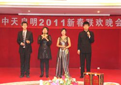2011年1月21日,公司在工作总结会后进行了迎新年联欢晚会,晚会中各部门呈现了一场盛大而欢乐的中天新年晚会,让每一个员工都了笑在脸上,乐在心里。请看照片,一同体会这欢乐的时刻。