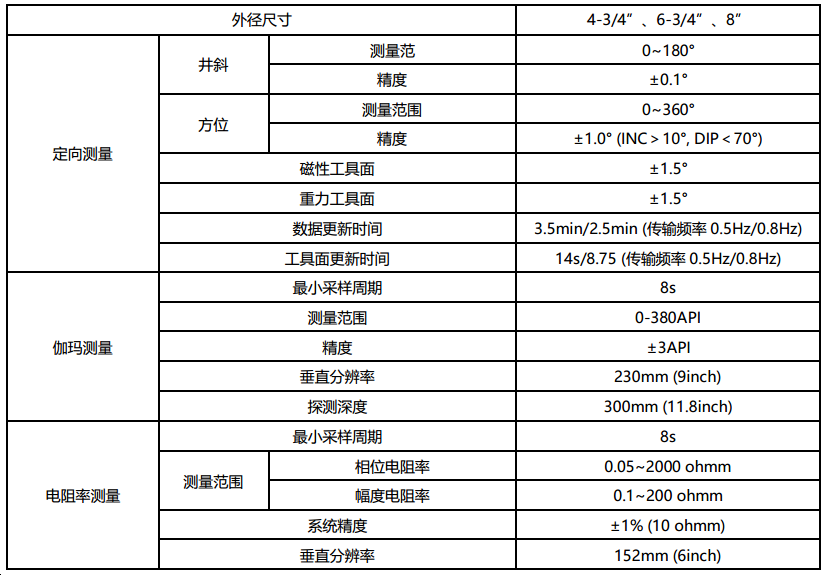 高精度井眼轨迹参数测量,提供井斜、方位、工具面等测量数据。